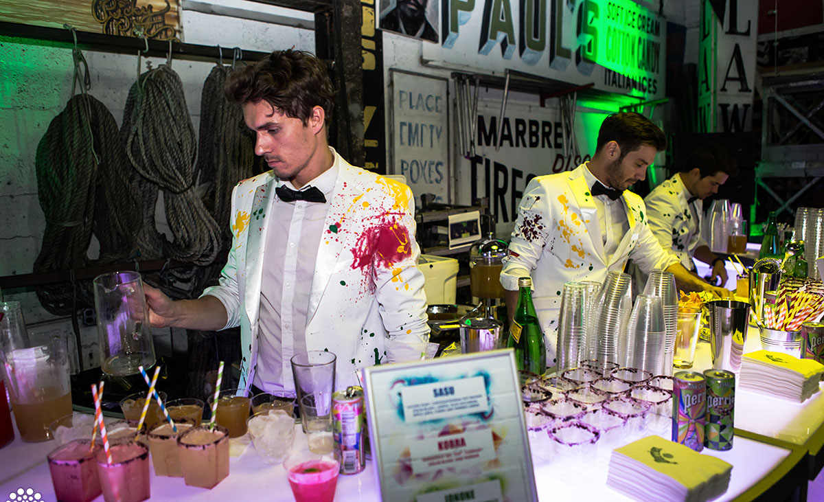 The Pool Deck: Built into the loading dock of a dilapidated warehouse, the "in-ground" pool came as a huge shock for most party-goers, who expected a typical warehouse event. Guests grabbed a custom swimsuit from the pool boys and hopped right in.